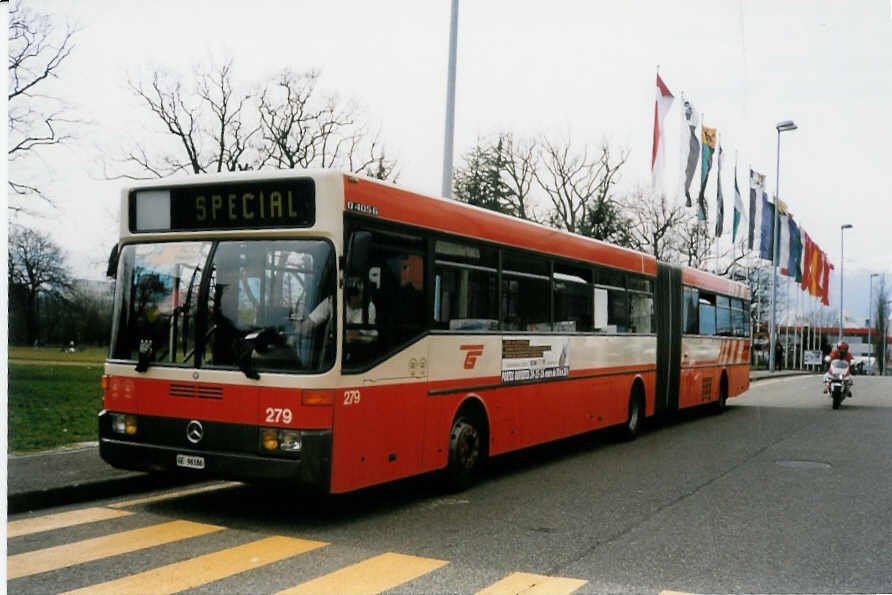 Aus dem Archiv: TPG Genève Nr. 279/GE 96'186 Mercedes O 405G am 21. März 1999 Genève, Palexpo