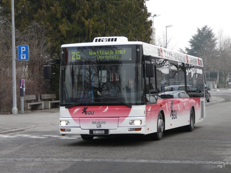 BGU - MAN Nr.8 SO 21958 unterwegs auf der Linie 26 beim Bahnhof Grenchen Süd am 23.01.2010
