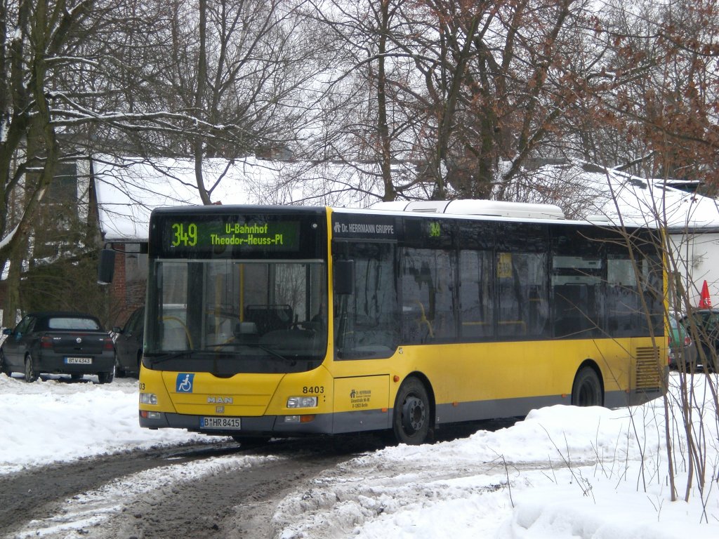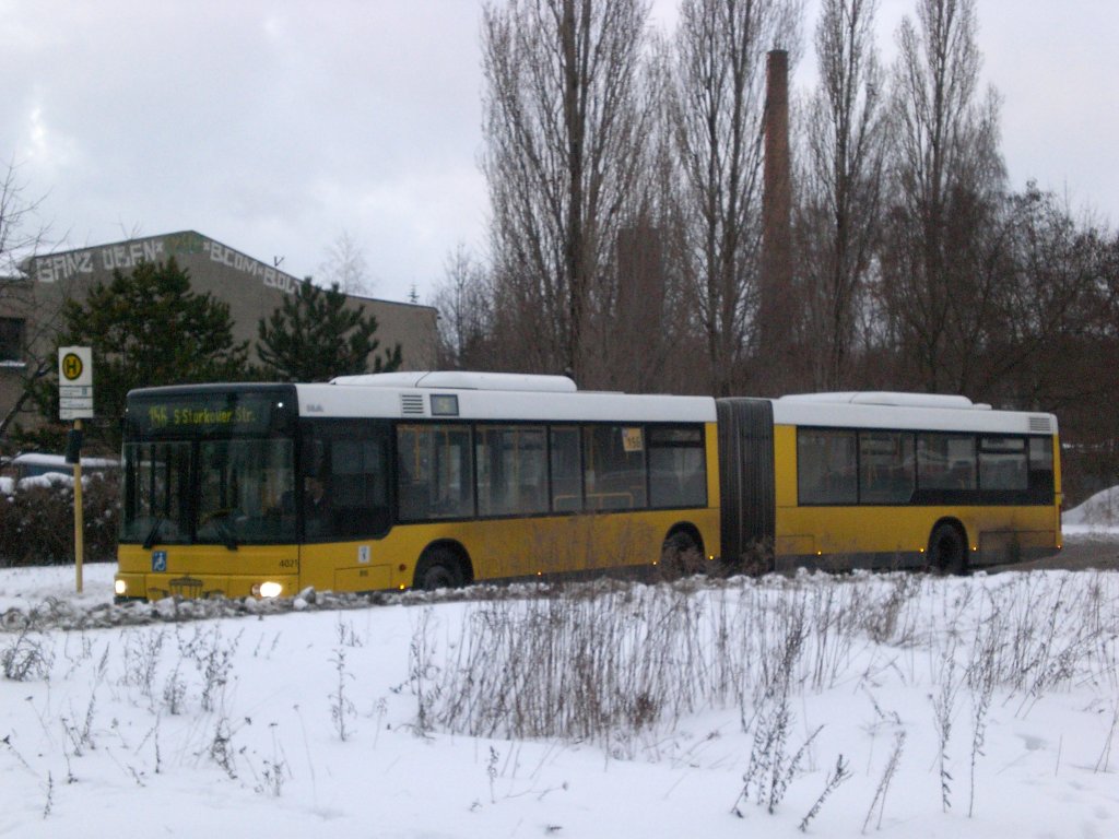 MAN Niederflurbus 2. Generation auf der Linie 156 nach S-Bahnhof Storkower Straße an der Haltestelle Weißensee Stadion Buschallee/Hansastraße.