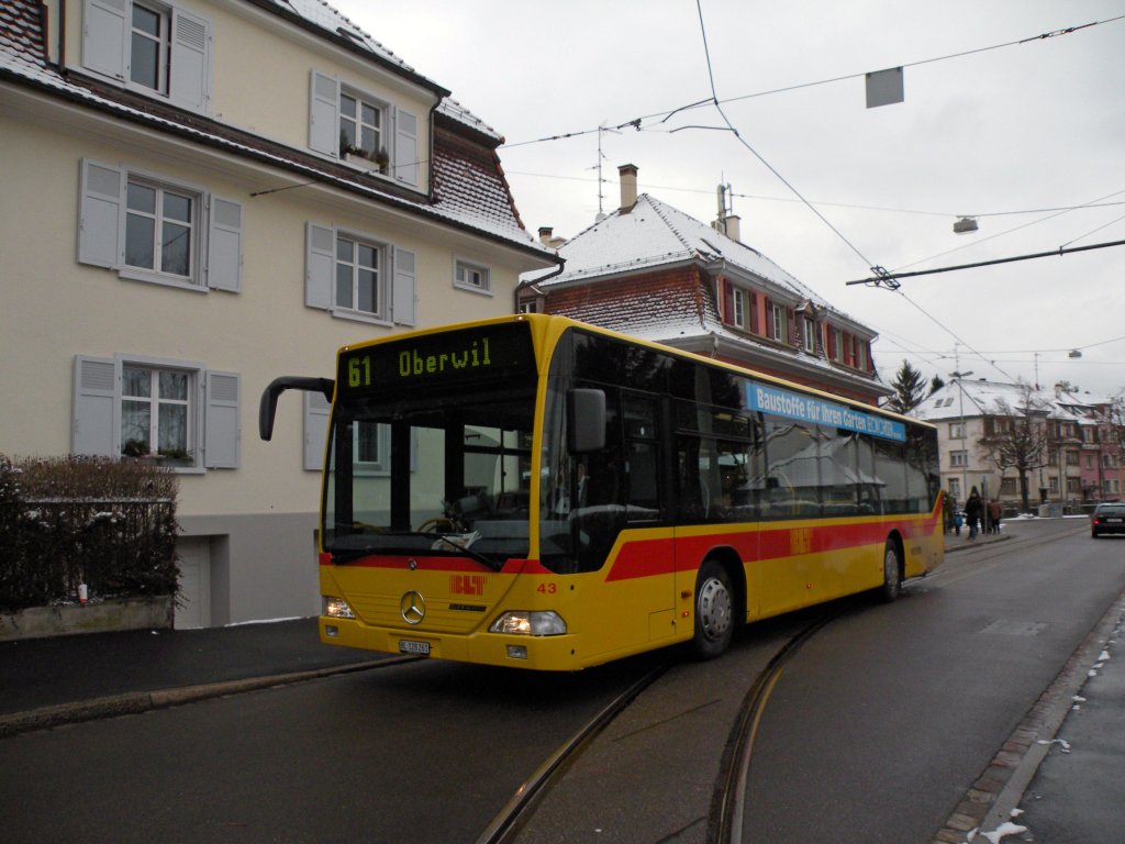 Mercedes Citaro der BLT mit der Betriebsnummer 43 an der Neuweilerstrasse. Die Aufnahme stammt von 31.01.2010.