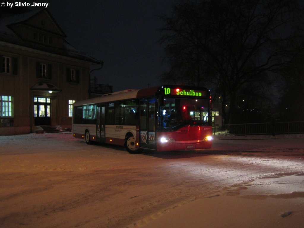Nachdem am 28.1.2010 eine ordentliche Menge Schnee im Flachland gefallen ist, mach sich der Solaris Nr. 286 beim Bahnhof Oberwinterthur auf den Weg als 10er Zusatzkurs für die Kantischüler.