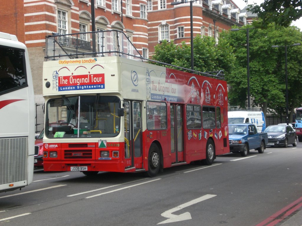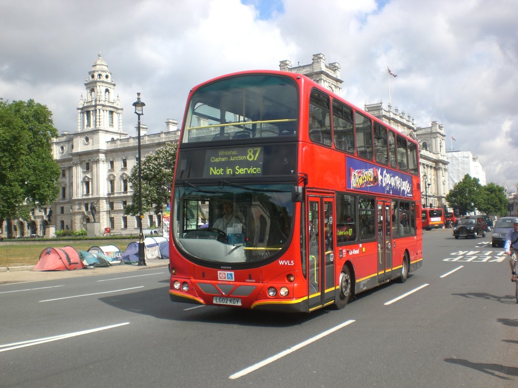 Ein Scania-Doppeldecker auf der Linie 26 an der Waterloostation.