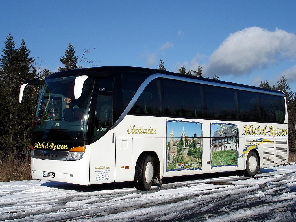 Setra 415 HD der Firma Michel-Reisen mit typischen Werbebildern der