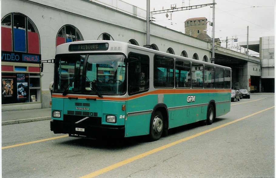 Aus dem Archiv: GFM Fribourg Nr. 24/FR 363 Volvo/R&J am 3. April 1999 Fribourg, Bahnhof