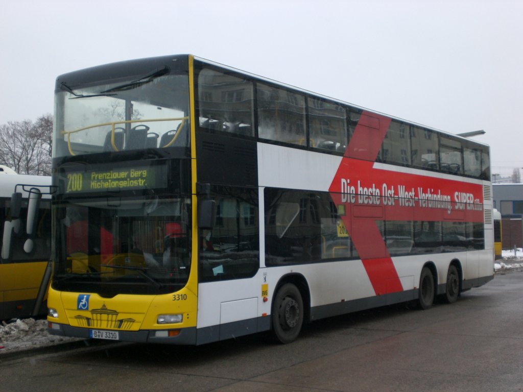 MAN Lion's City DD (Doppelstock) auf der Linie 200 nach Prenzlauer Berg Michelangelostraße an der Haltestelle Hertzallee.