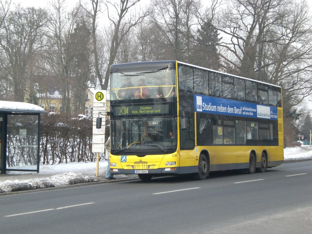 MAN Lion's City DD (Doppelstock) auf der Linie X34 nach Kladow Kaserne Hottengrund an der Haltestelle Hertzallee.