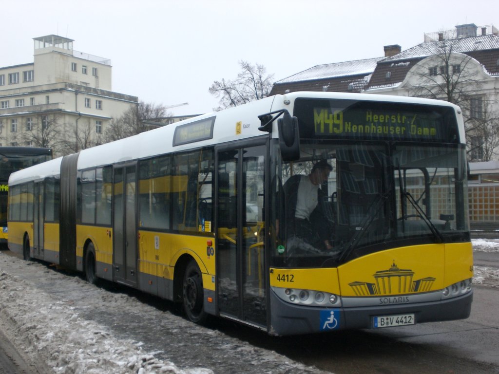 Solaris Urbino auf der Linie M49 nach Staaken Heerstraße/Nennhauser Damm an der Haltestelle Hertzallee.