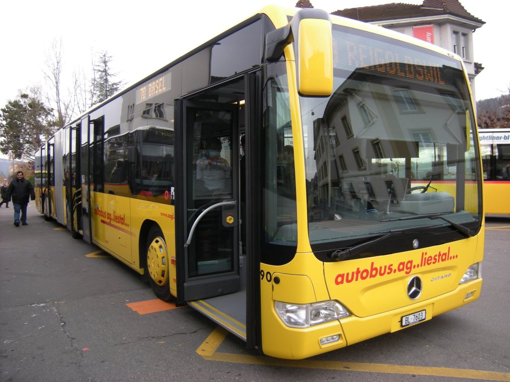 Einer der letzten O405GN der AAGL auf der Linie 70 in Richtung Reigoldswil. Sein Schwesterbus mit der Betriebsnummer 96 wurde mit RBL ausgerüstet.