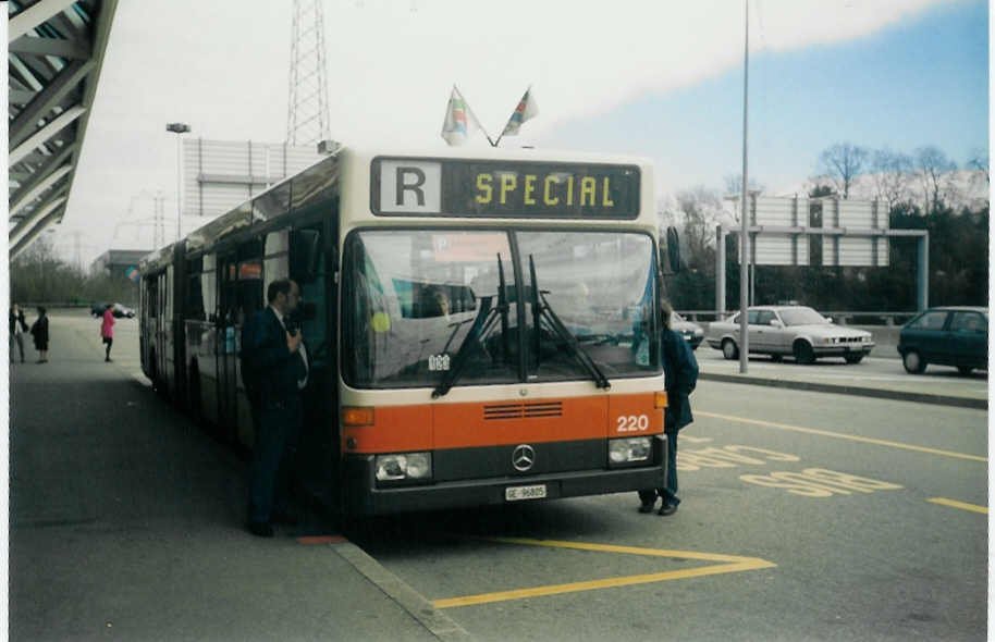 Aus dem Archiv: TPG Genève Nr. 220/GE 96'805 Mercedes O 405GN am 16. März 1997 Genève, Cointrin