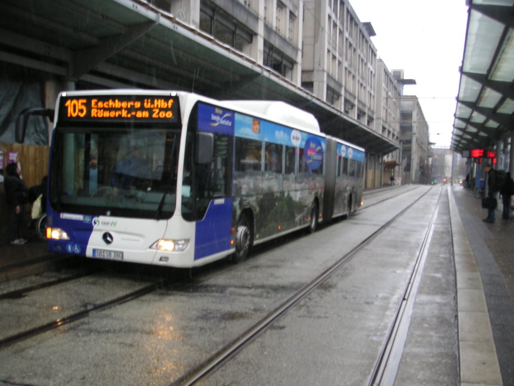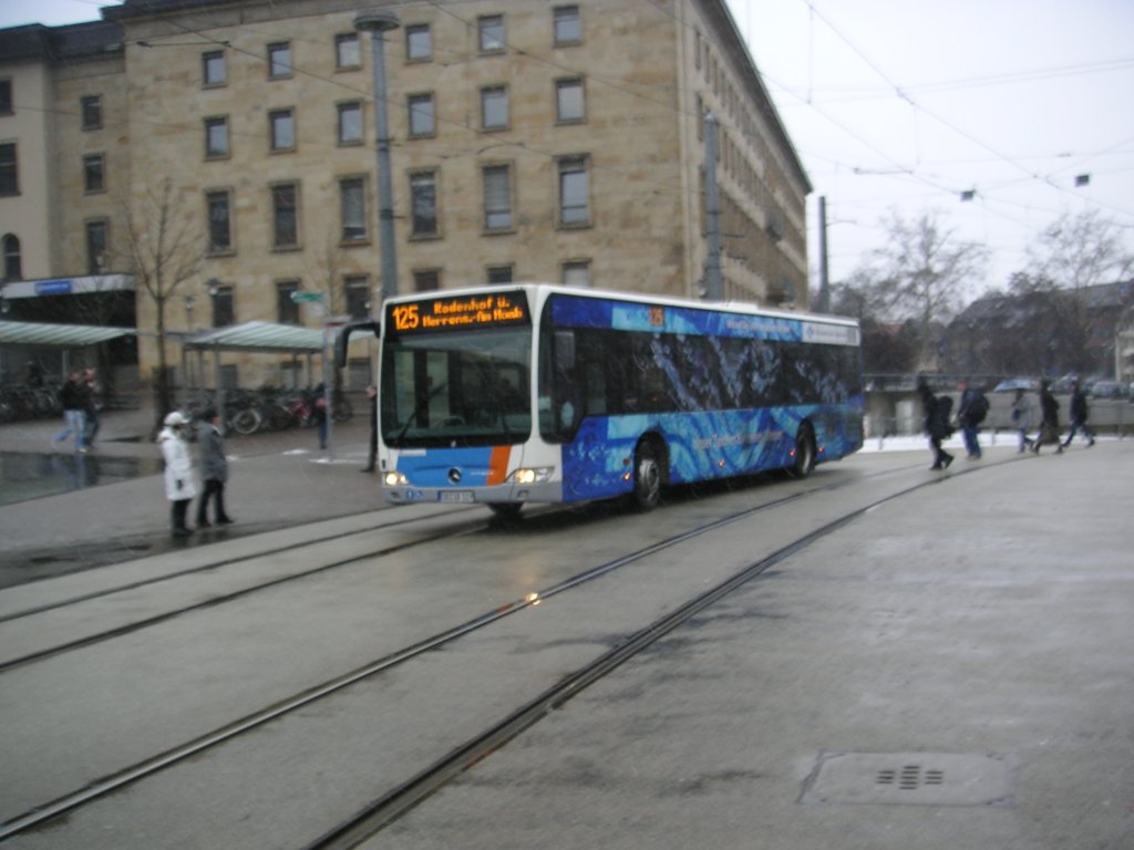 Hier ist ein etwas älterer Citaro-Bus in Saarbrücken am Hauptbahnhof zu sehen. Der Bus fährt gerade seine Haltestelle an. Das Bild habe ich am 30.01.2010 Fotografiert.
