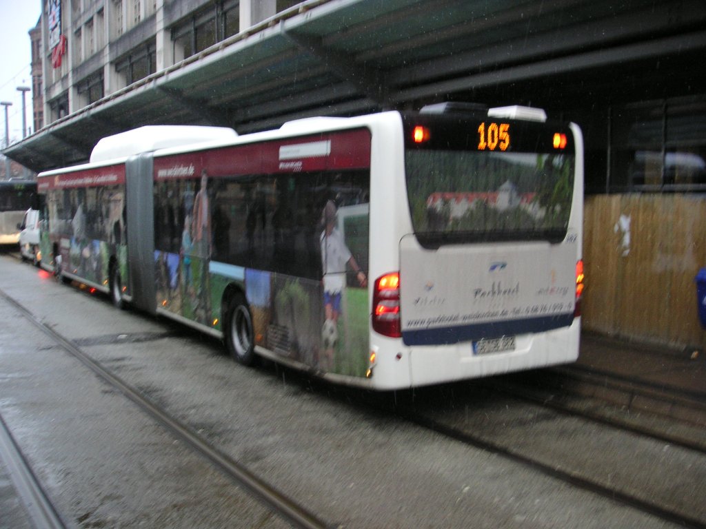 Hier ist einer der neuen Citaro-Erdgasbusse zu sehen. Dieses Fahrzeug trägt Werbung von Weiskirchen im Saarland. Den Bus konnte ich leider nur von hinten Fotografieren. Ein Foto von vorn wird folgen. Das Foto habe ich am 30.01.2010 gemacht.Leider war an diesem Tag Schnee Regen deshalb hat das Foto keine gute Qualität.