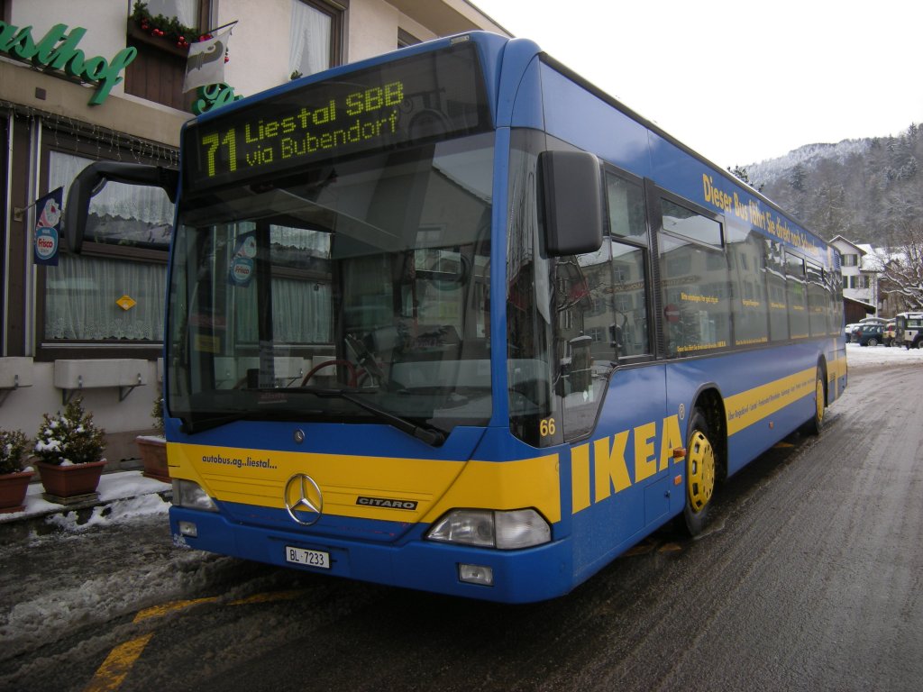 Ikea-Bus Nr. 66 auf der Linie 71 in Reigoldswil am Dorfplatz. (Aufnahme: 2009)