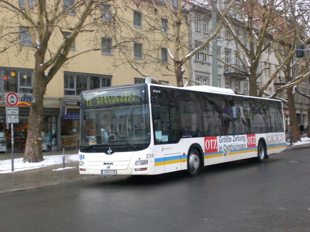 MAN Niederflurbus 3. Generation (Lions City) auf der Linie 11 nach Beutenberg Campus an der Haltestelle Stadtzentrum.