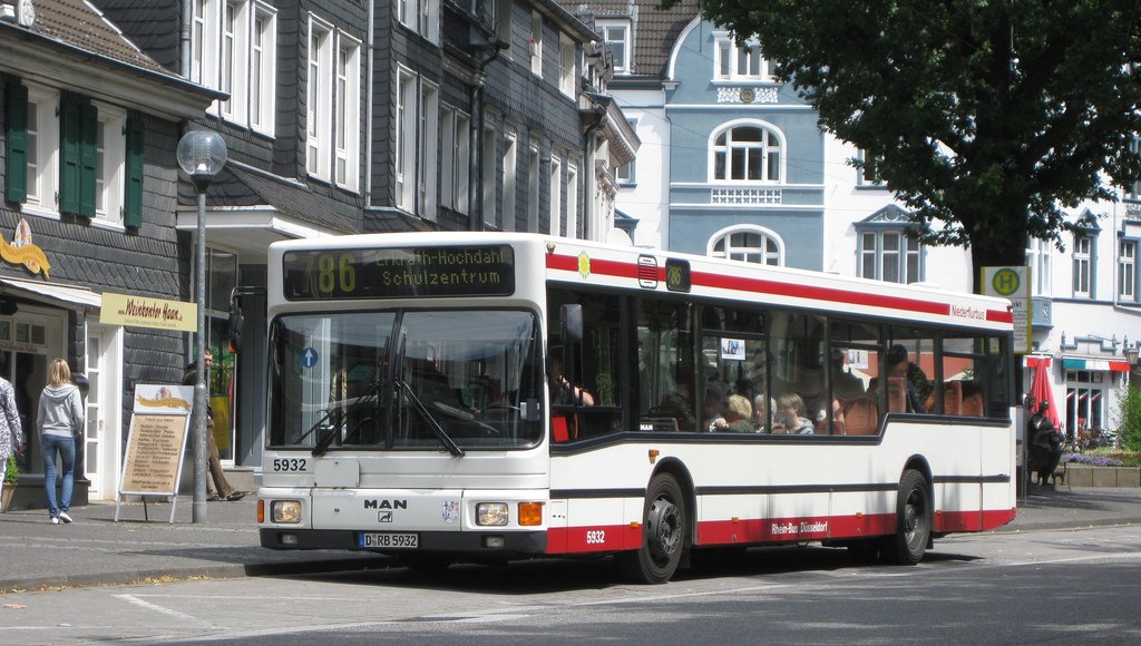 Rheinbahn Wagen 5932 am 20.07.2009 an der Haltestelle Haan Markt als Linie 786