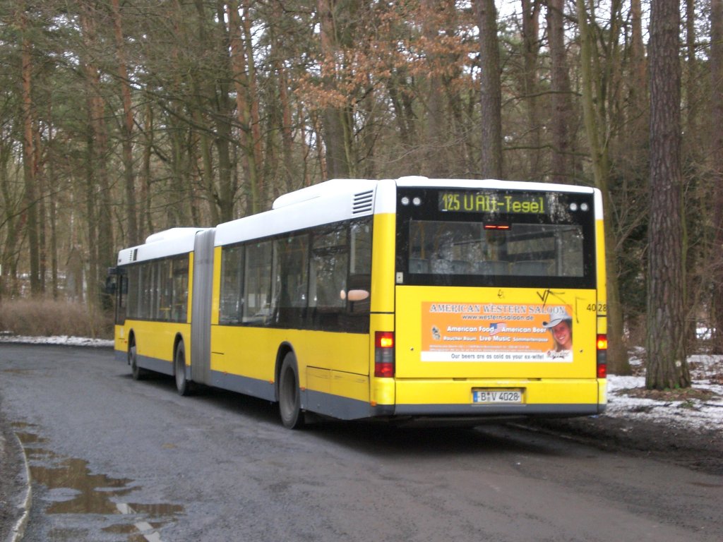 MAN Niederflurbus 2. Generation auf der Linie 125 nach U-Bahnhof Alt-Tegel an der Haltestelle Frohnau Invalidensiedlung.