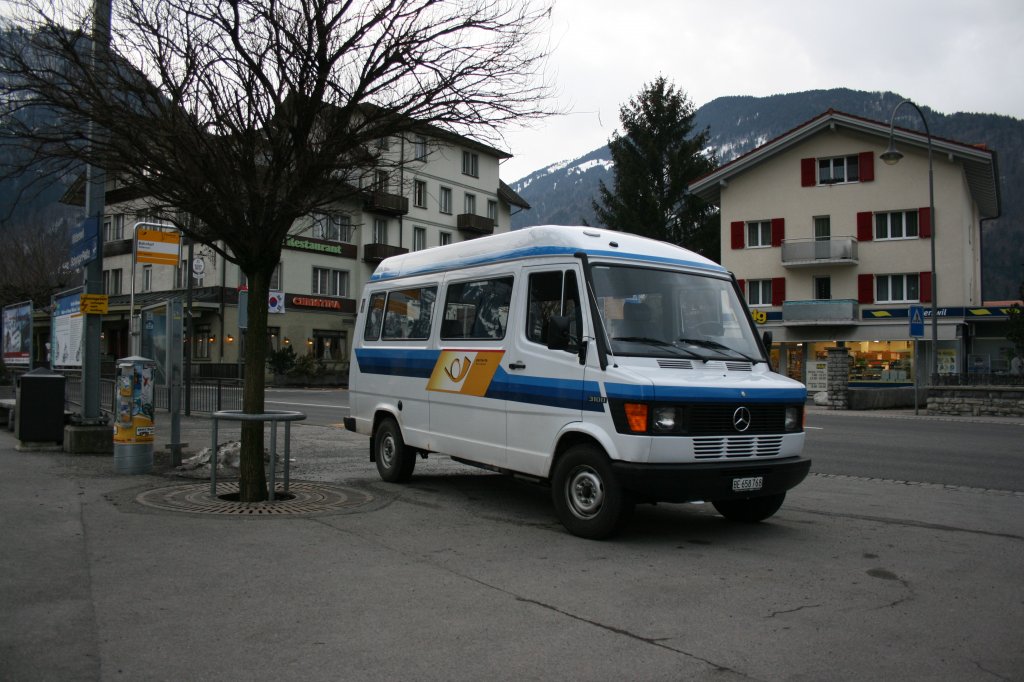 PU Schmocker, Stechelberg, BE 658'768 (Mercedes-Benz O310, 1992) am 24.2.2010 in Wilderswil. Das Fahrzeug wurde ursprünglich an Flück Reisen in Brienz abgeliefert.