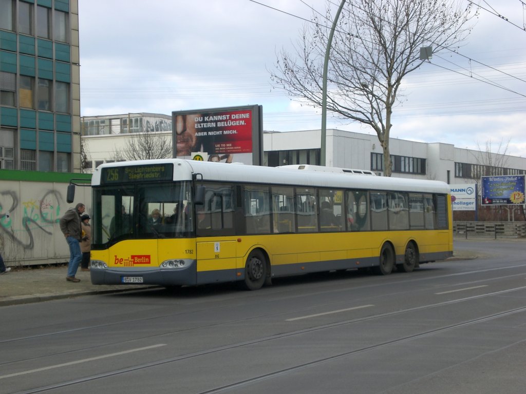 Solaris Urbino auf der Linie 256 nach S+U Bahnhof Lichtenberg am Betriebshof Lichtenberg.