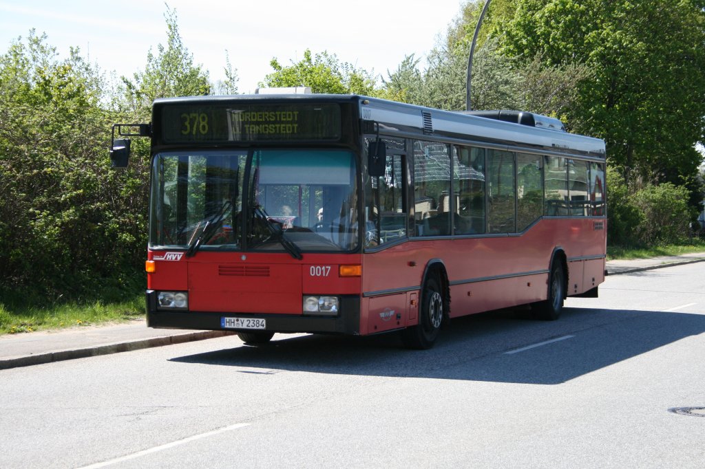 0017 ein MB O405N2 mit Bj.2000 am 5.Mai 2010 auf der Linie 378 an der Haltestelle Siegfriedstraße in Norderstedt