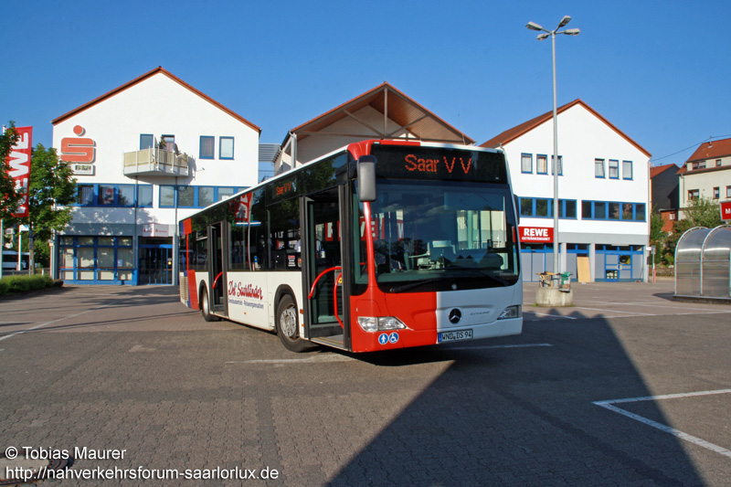 23.05.2010: gerade 1 Jahr und 1 Monat ist dieser Citaro Facelift nun alt, der als Neuwagen im April 2009 zum Omnibusbetrieb Dieter Schmidt nach Marpingen kam. Der 280 Ps starke Stadtbus wird unter anderem im Auftrag der NVG in Neunkirchen eingesetzt. Hier sehen wir den WND-SD 94 bei einem kleinen "Testshooting" in Landsweiler-Reden. Es galt zu testen, ob die Lawo Matrix auch ohne Streifen fotografiert werden. Und siehe da: es geht!