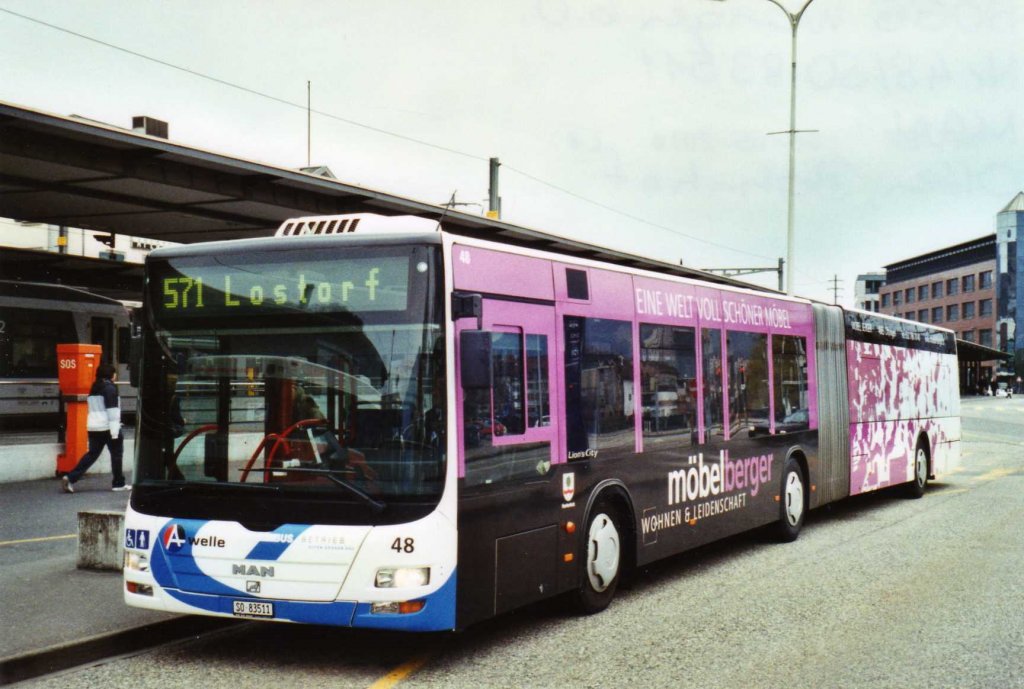 BOGG Wangen a.A. Nr. 48/SO 83'511 MAN am 14. April 2010 Olten, Bahnhof (mit Vollwerbung für "möbelberger")