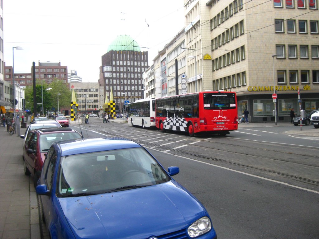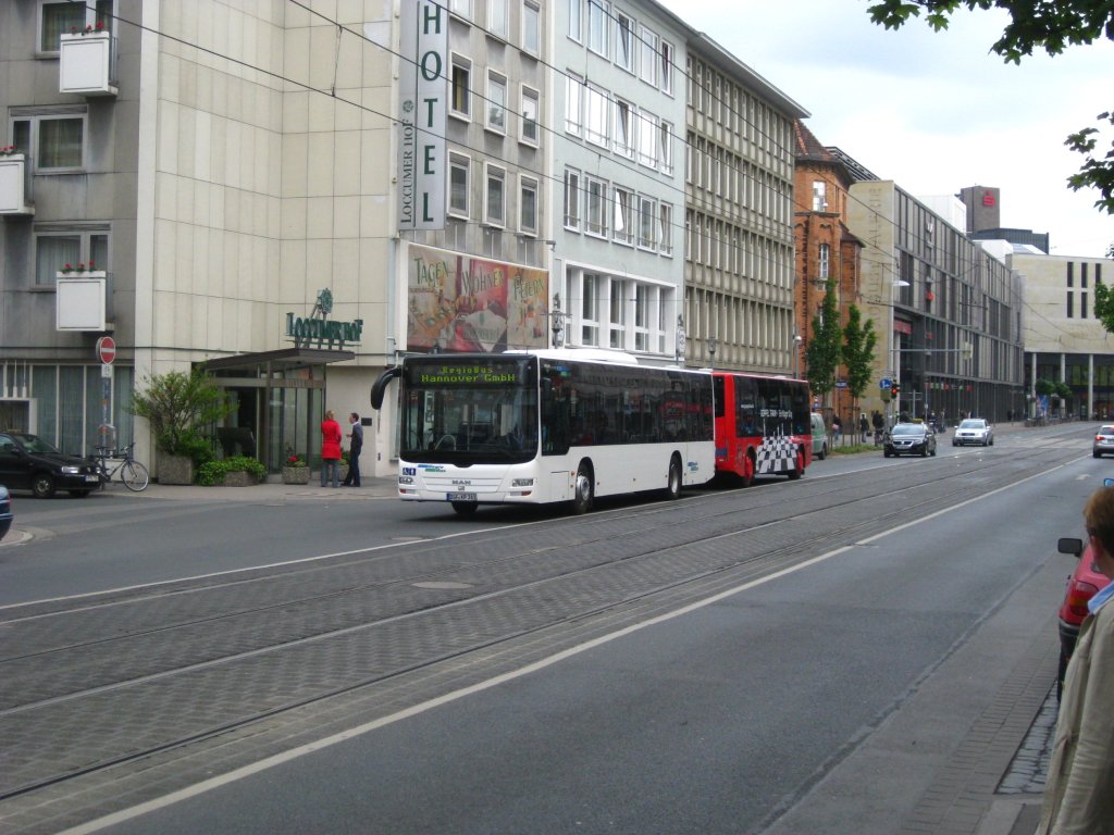 Ein neuer Anblick in Hannover: Die RegioBus Hannover testet derzeit einen Göppel Maxi-Train, hier auf der Kurt-Schumacher-Straße in Hannover zu sehen. Das Gespann ist in anderen Städten, bspw. Osnabrück, bereits im Liniendienst zu sehen (als "Bus Plus").