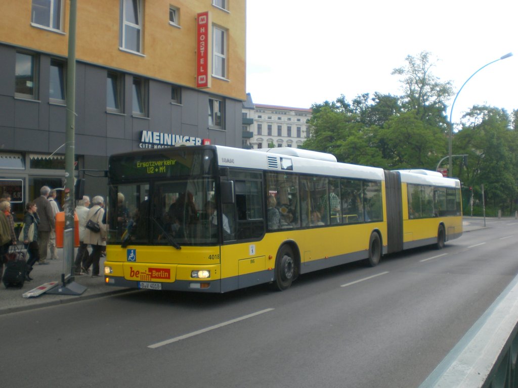 MAN Niederflurbus 2. Generation als SEV für die U-Bahnlinie 2 zwischen S+U Bahnhof Pankow und U-Bahnhof Senefelder Platz.