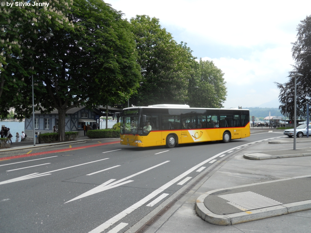 Postauto/PU Bucheli Nr. 29 (Mercedes Citaro O530Ü) am 22.5.2010 beim Bhf. Luzern auf der Linie 73 nach Udlingenswil. Obwohl der Wagen mit Baujahr 2006 noch relativ neu ist, ist er nur noch Reservewagen. Denn auf der Linie 71 fährt in der Regel der besser geeignete Integro Hochflurwagen, und die Linie 73 rechtfertigt vom Fahrgastaufkommen her einen 15m-Wagen.