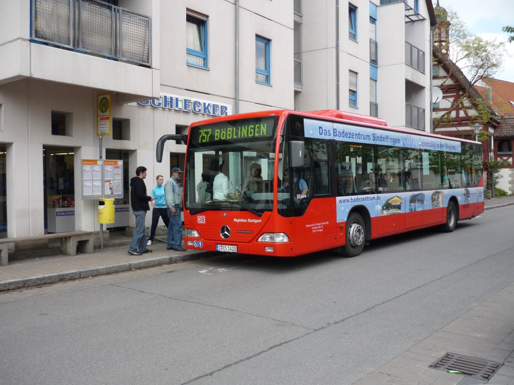 S-RS 1420 kommt von Renningen auf der Linie 757 und fährt nach Böblingen ZOB.Am 22.05.2010, hält an der Haltestelle altes Rathaus in Maichingen.