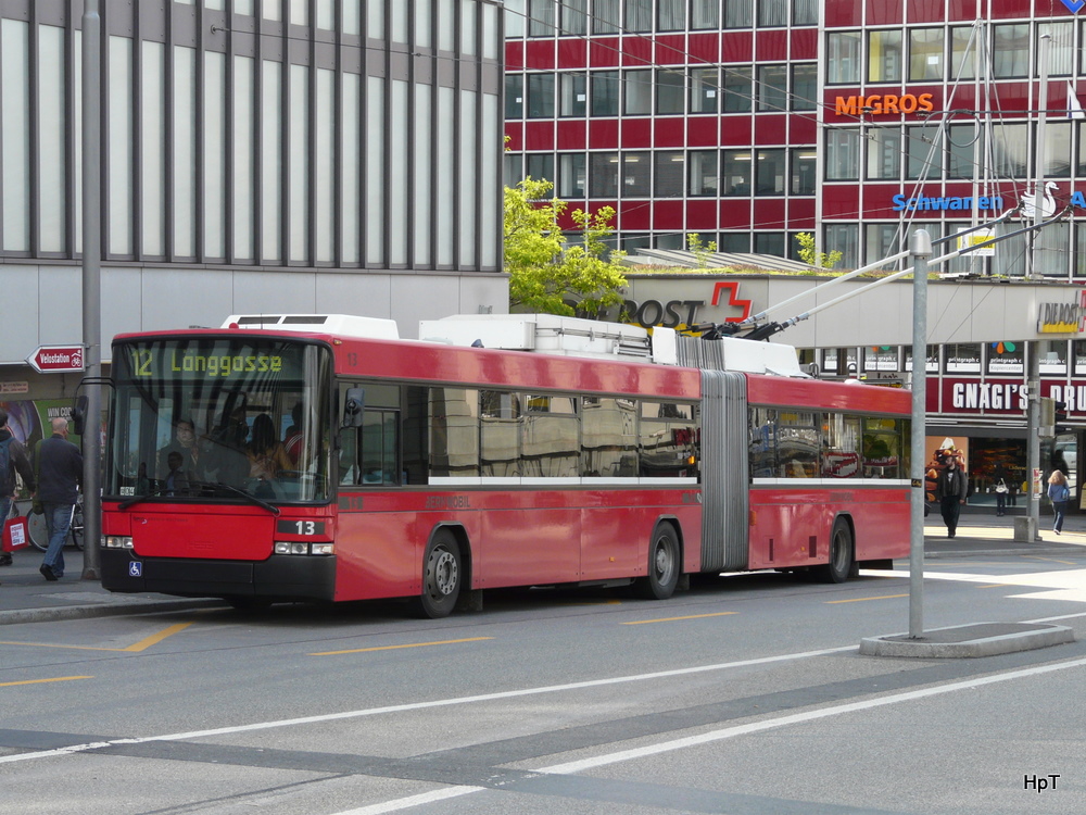 Bern Mobil - NAW Trolleybus Nr.13 unterwegs auf der Linie 12 in der Stadt Bern am 12.05.2010