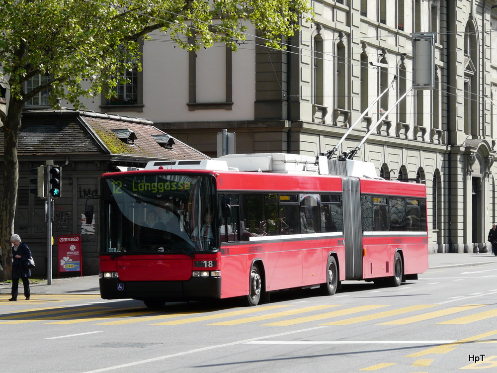 Bern Mobil - NAW Trolleybus Nr.18 unterwegs auf der Linie 12 in der Stadt Bern am 12.05.2010