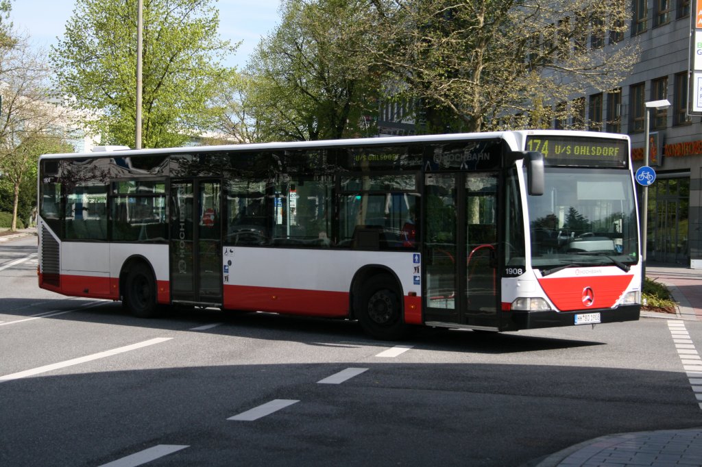Der 2000 an die HHA gegangene Citaro mit der Nummer 1908 am 2.Mai 2010 auf der Linie 174 am S Bf.Poppenbüttel