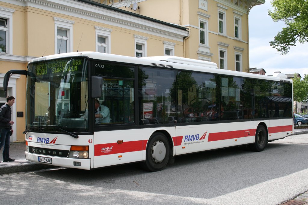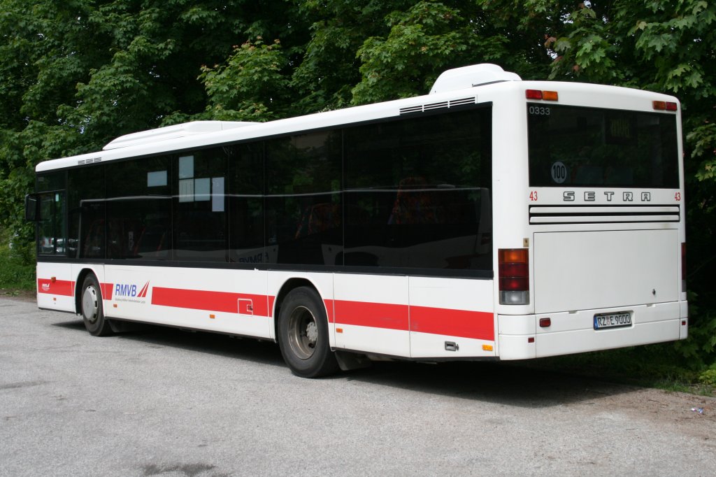 Der eigentlich der VHH gehörende Setra S315NF, was man an der noch dranstehenden VHH Nummer 0333 noch leicht erkennen kann, ist wie die anderen von seinem Typ an die RMVB vermietet worden. Hier am 26.Mai 2010 am Bf.Ratzeburg.