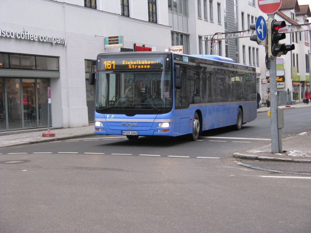 Edelweiß M-ER 1042 auf der Linie 161.Dieser Lion's City hatte urprünglich die 3.Tür als Außenschwenkschiebetür, wie alle MAN Haldenwagen, das wurde jedoch umgebaut.