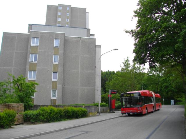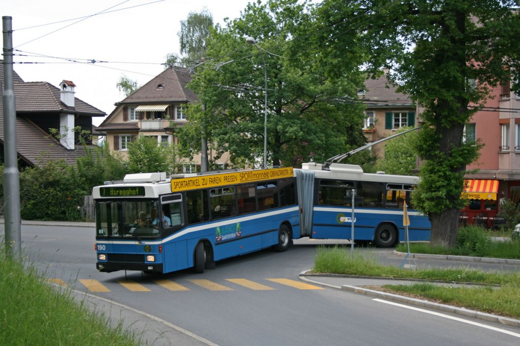 Fast wäre er auseinandergebrochen, so siehts zumindest aus. In Wirklichkeit sehen die Busse der Linie 7 beim abbiegen in der Sternmatt immer so aus. Dies liegt daran, dass die Strasse dort in verschiedenste Richtungen abschüssig ist. Zu sehen ist der letzte verbleibende Luzerner NAW/Hess/Siemens BGT 5-25 mit der Fahrzeugnummer 190.