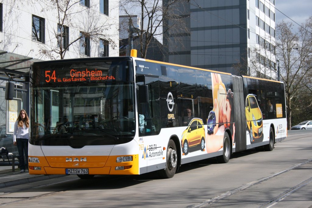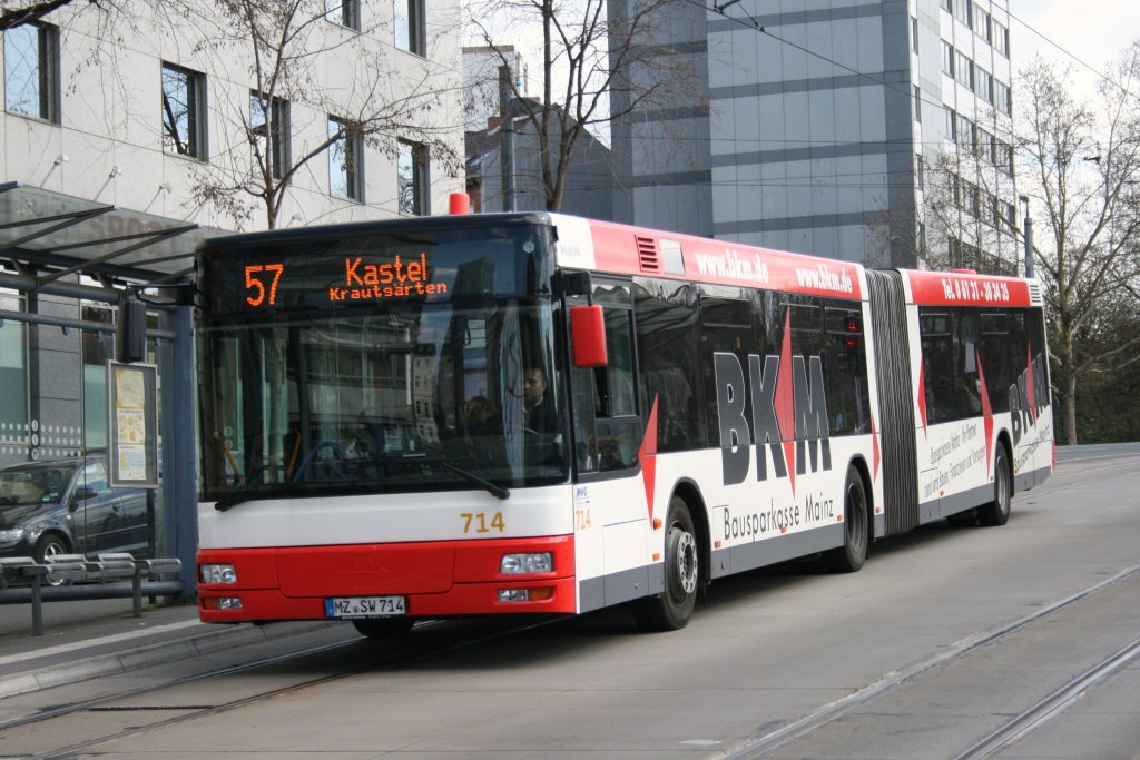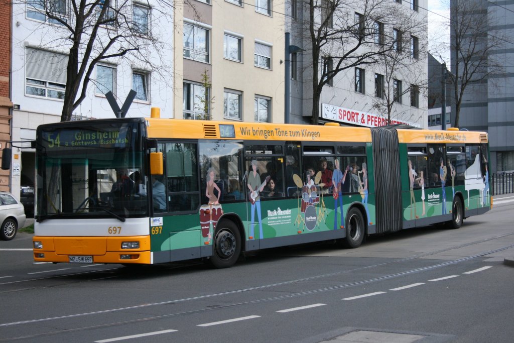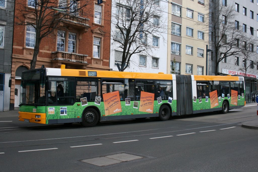 MVG 698 (MZ SW 698) macht Werbung für die Stasdtwerke Mainz.