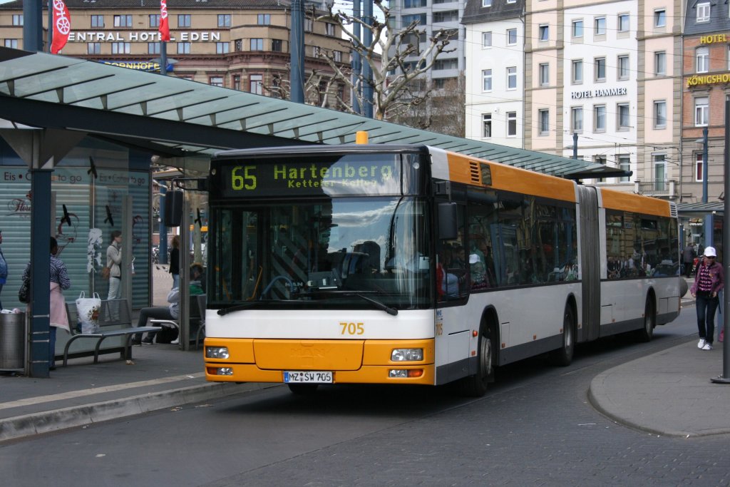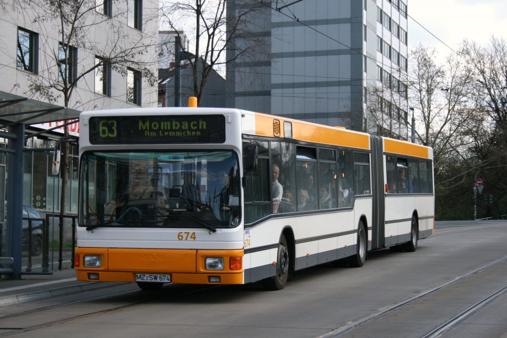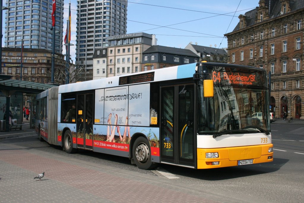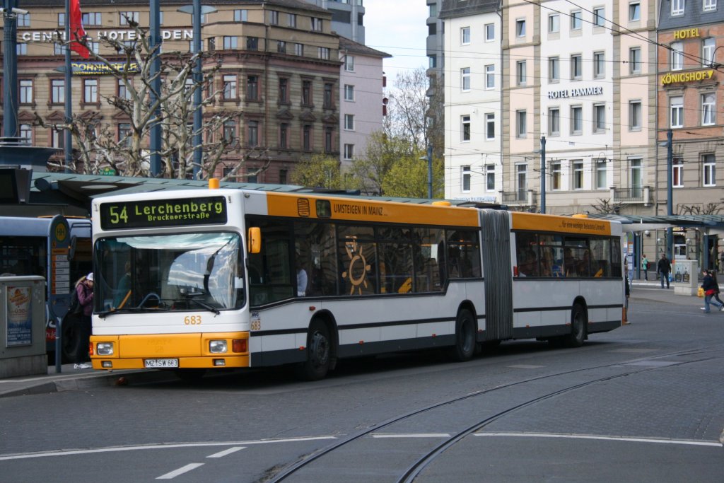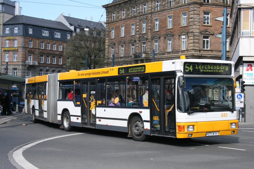 MVG 698 (MZ SW 698) macht Werbung für die Stasdtwerke Mainz.