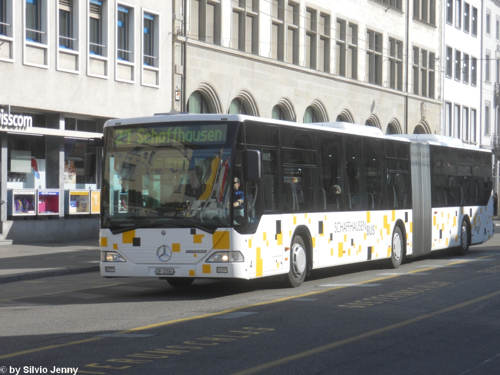 RVSH Nr. 4 (Mercedes Citaro O530GÜ) am 22.5.2010 beim Bhf. Schaffhausen. Der Bus ist auf der Linie Schaffhausen - Schleitheim (ugs. ''Schlaate'') unterwegs, wo von 1905-1964 ein Tram fuhr.