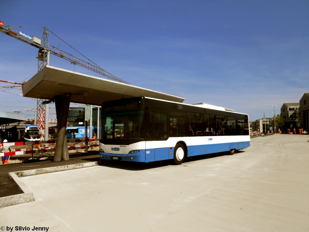 VBZ Nr. 282 (Neoplan Centroliner Evolution N4516) am 29.4.2010 beim Bhf. Stettbach. Als Folge der 3.Etappe der Glattalbahn werden die Tram und Bushaltestellen beim Bhf. Stettbach umgebaut. Die Busperrons waren Mitte April fertig gebaut, und bereits dem Publikumsverkehr freigegeben.