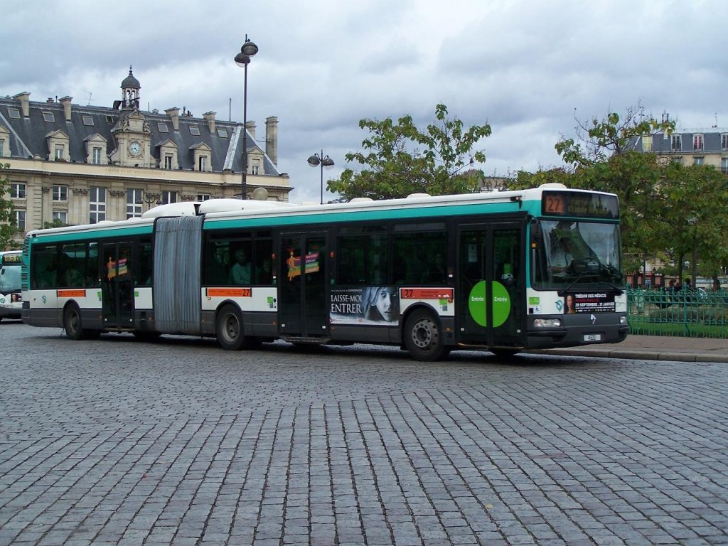 Agora Gelenkbus Nr 4500 der Linie 27, an der Haltestelle "Place d'Italie" am 02/10/10.