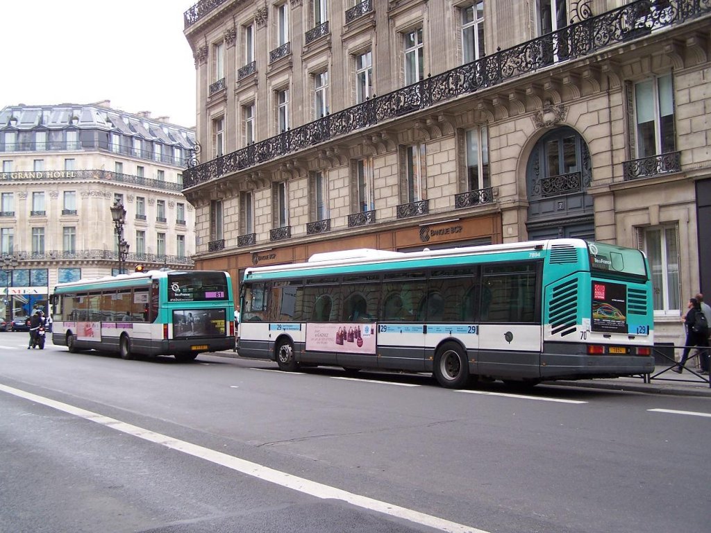 Auf dieses Bild sieht mann den Unterschied zwischen ein Agora Line (Wagen 8156 auf der Linie 81) und ein Agora Solo (Wagen 7894 auf der Linie 29).