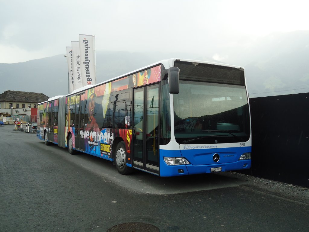 BSW Sargans Nr. 360/SG 308'601 Mercedes Citaro am 13. August 2010 Sargans, Bahnhof (mit Vollwerbu^ng für "Metroboutique")