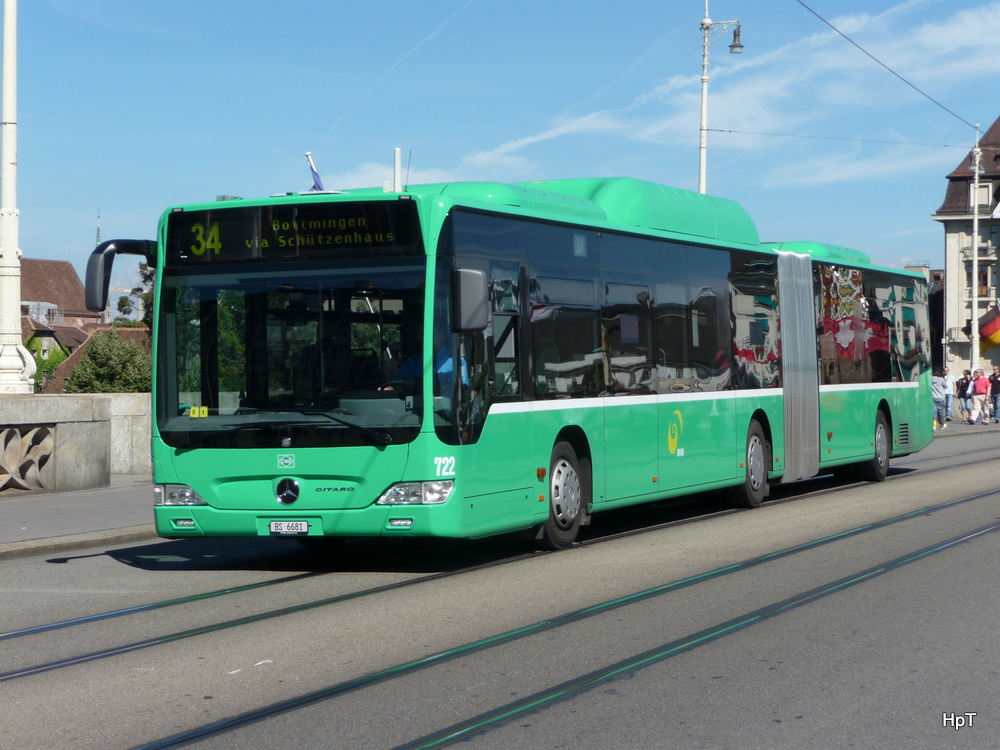 BVB - Mercedes Citaro Nr.722 BS 6681 unterwegs auf der Linie 34 in der Stadt Basel am 12.09.2010