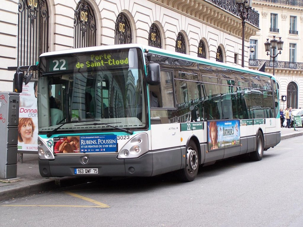 Citelis Line Nr 3023 der Linie 22, an der Haltestelle "Opera" am 02/10/10.