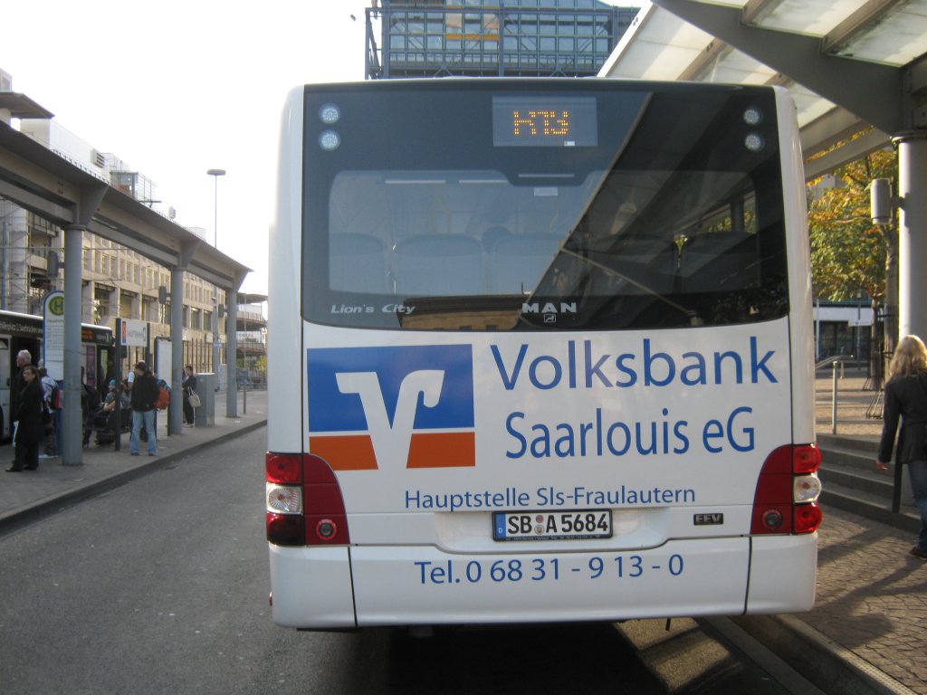 MAN Bus der Firma Horst Becker Touristik fährt im Auftrag von Saar-Pfalz-Bus Linienverkehr in Saarbrücken. Das Foto habe ich am 08.10.2010 gemacht.
