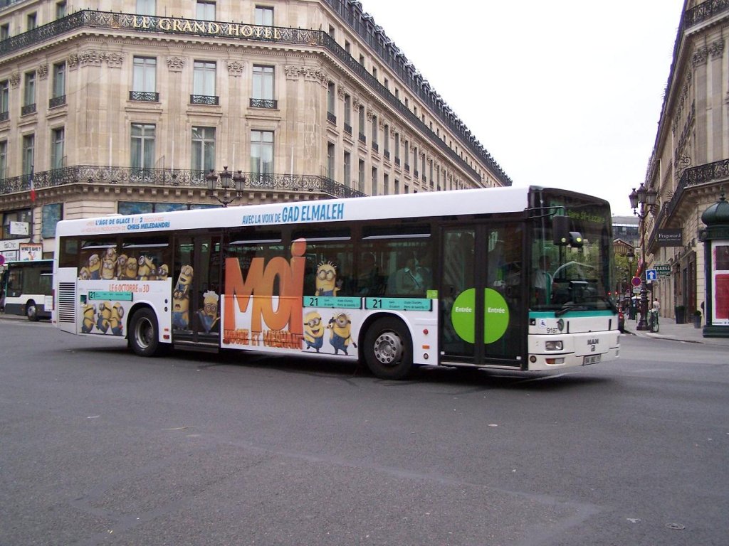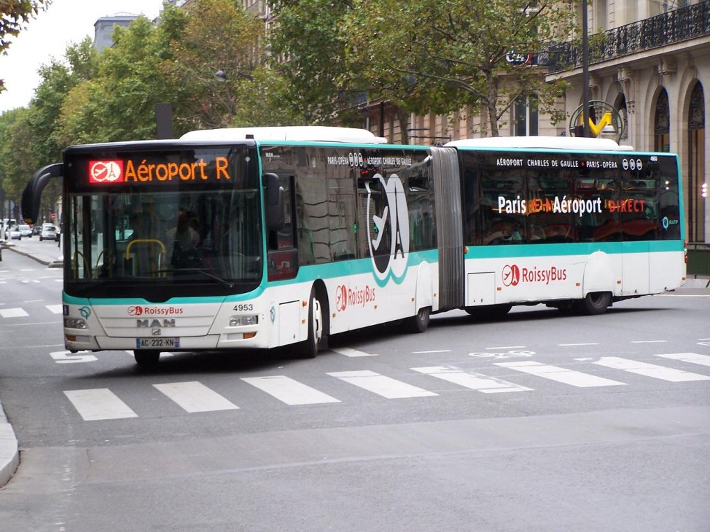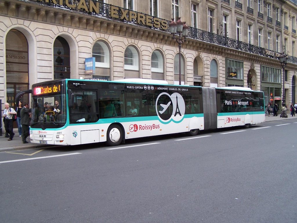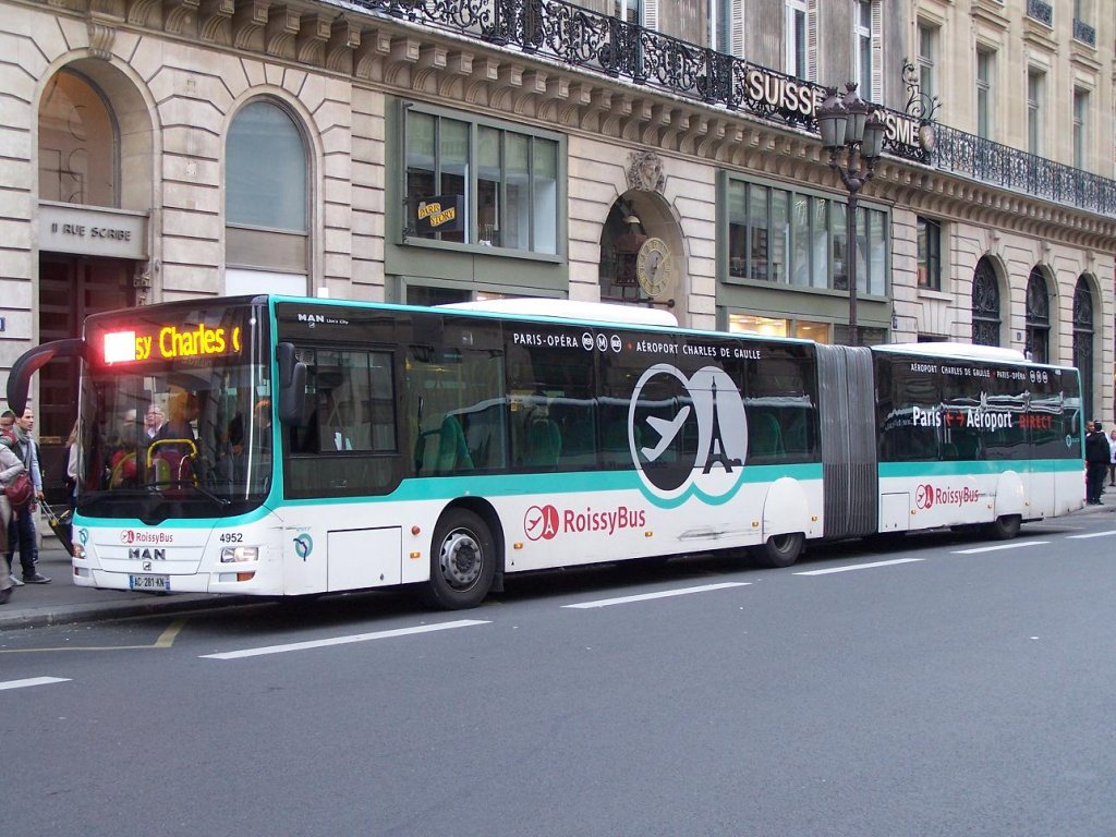 Lion's City GL Nr 4952 der Roissybus Linie, an der Haltestelle "Opera" am 02/10/10.