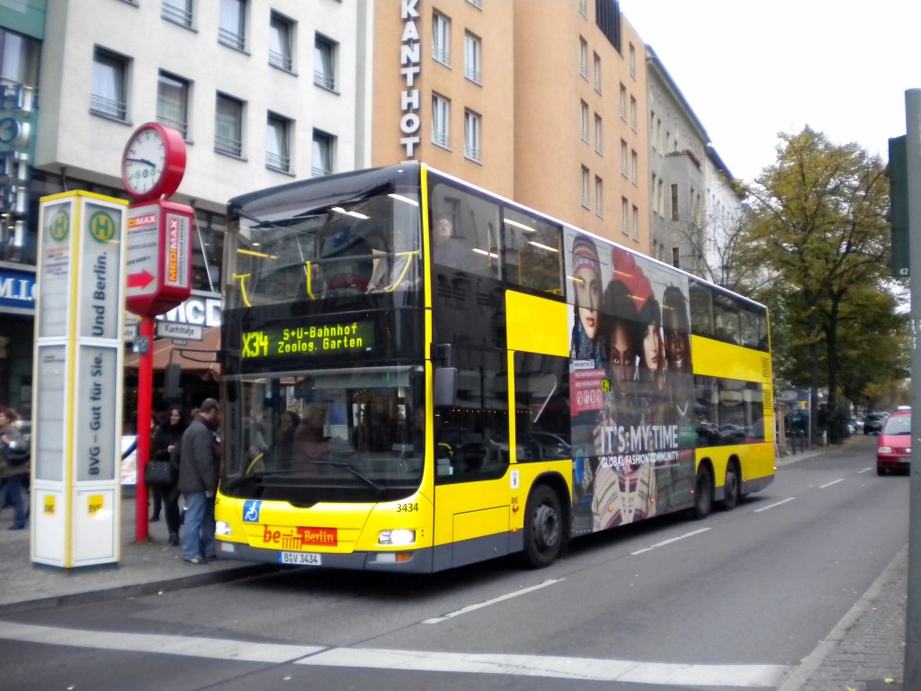 MAN Lion's City DD (Doppelstock) auf der Linie X34 nach S+U Bahnhof Zoologischer Garten am U-Bahnhof Wilmersdorfer Straße/Kantstraße.
