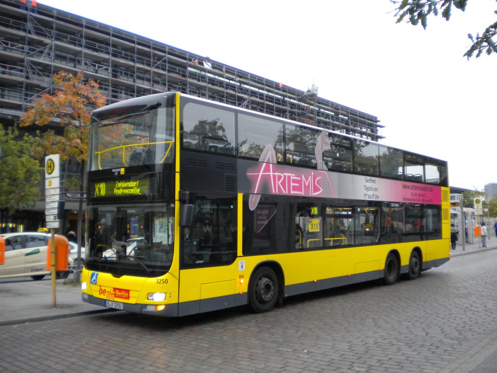 MAN Lion's City DD (Doppelstock) auf der Linie X10 nach Zehlendorf Andreezeile am S+U Bahnhof Zoologischer Garten.