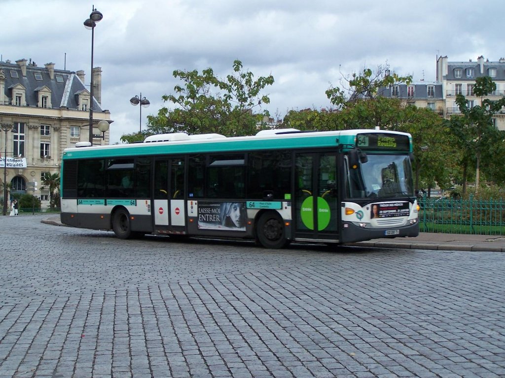 Scania Omnicity Solobus Nr 9329 der Linie 64, an der Haltestelle "Place d'Italie" am 02/10/10.