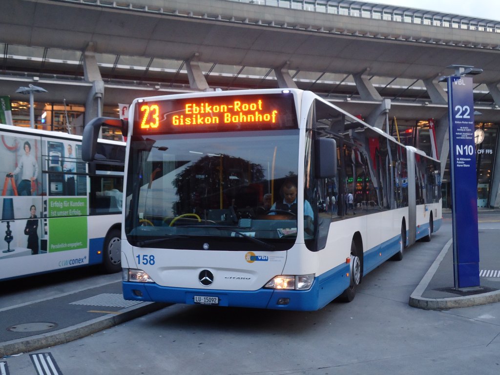 VBL Luzern Nr. 158/LU 15'092 Mercedes Citaro am 13. August 2010 Luzern, Bahnhof