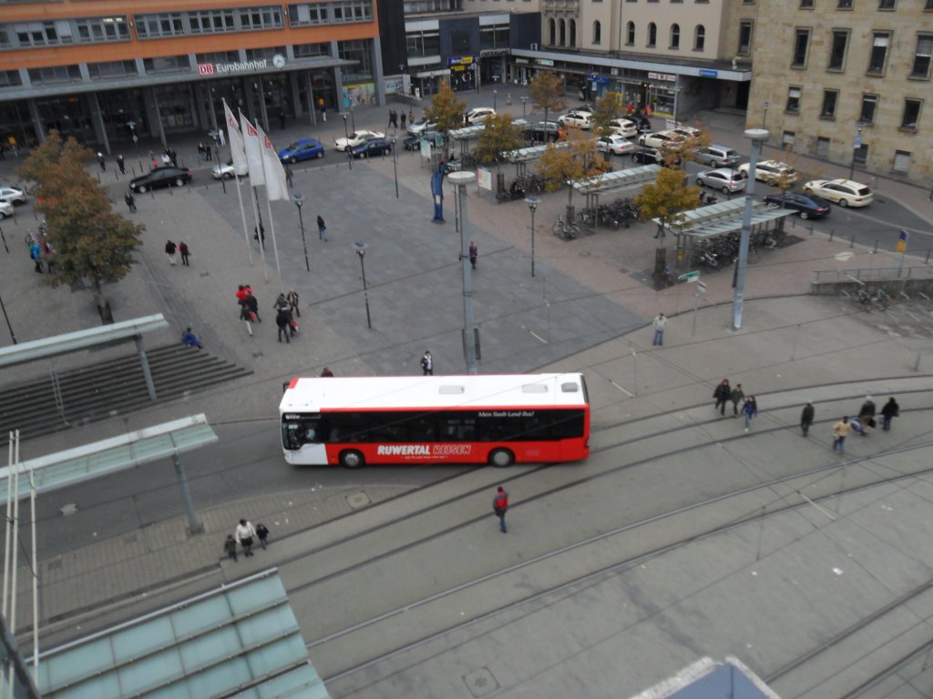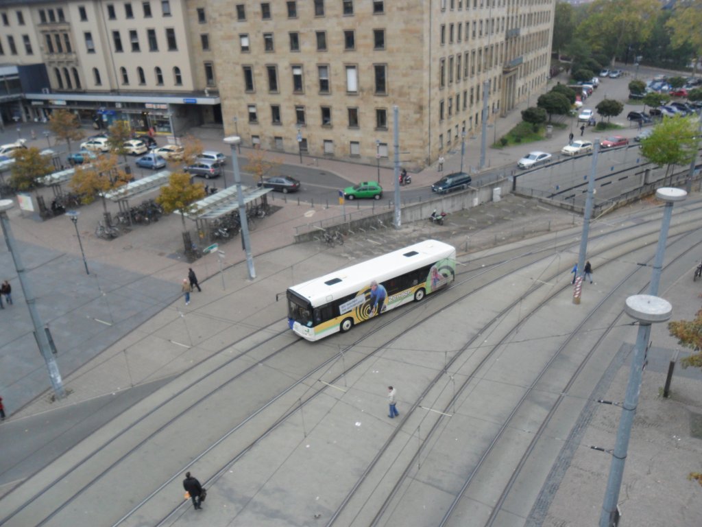 Die Aufnahme habe ich am 22.10.2010 vom Dach der neuen Europa Gallerie gemacht.Hier sind Busse zu sehen die an die haltestelle Saarbrücken Hauptbahnhof fahren.